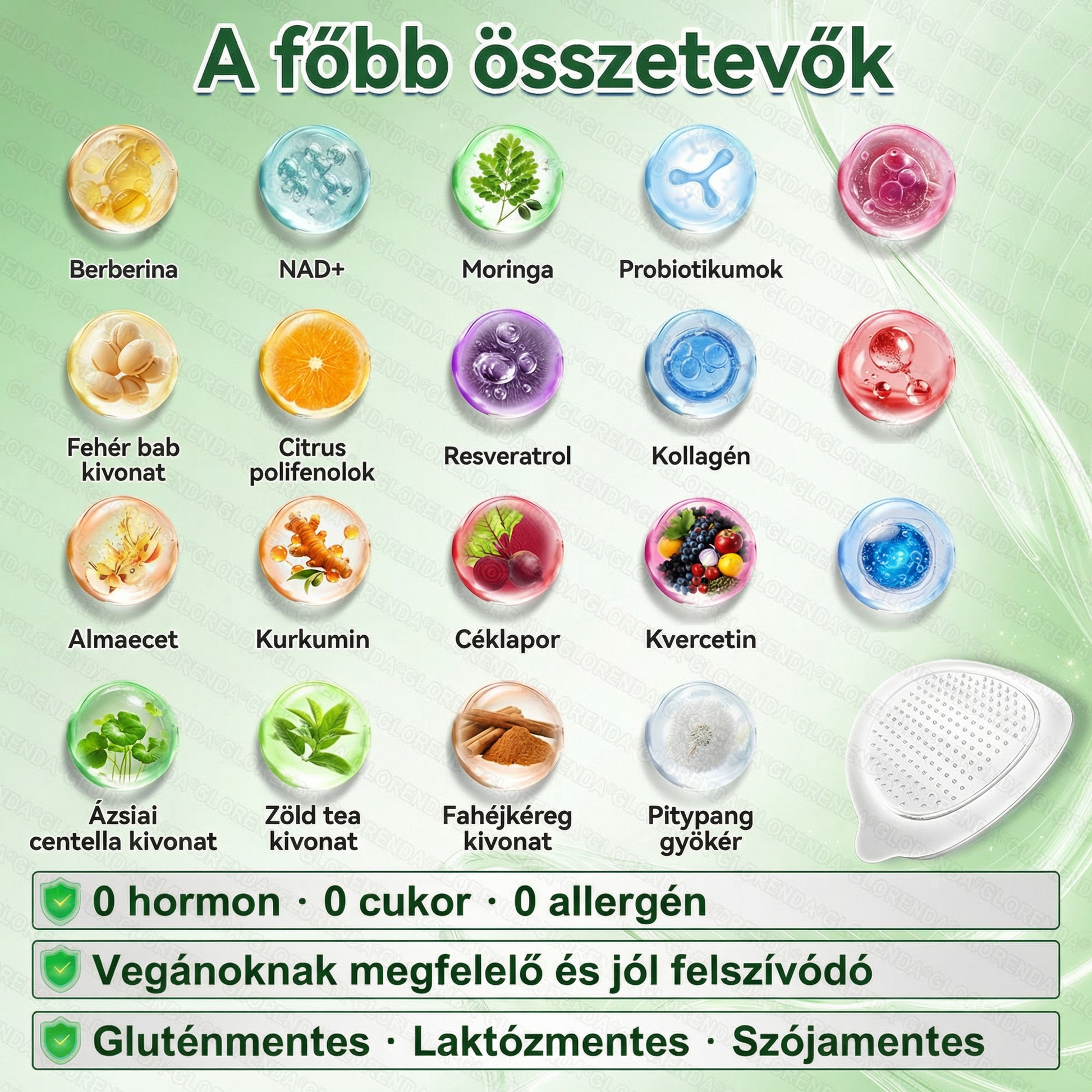 Endokrinológiai szakértők klinikailag tesztelték, a 𝑮𝑳𝑶𝑹𝑬𝐍𝐃𝗔® 𝗠𝗼𝗿𝙞𝙣𝙜𝙖 · 𝘽𝙚𝙧𝙗𝙚𝙧𝙞𝙣𝒂 × 𝑵𝑨𝐃+ Haladó Microalga Nano 10‑az‑1 tapasz teljesen új, természetes formulát kínál, háromszoros hatékonysággal. Klinikai szempontból látható javulás már 7 nap alatt, visszahízás nélkül.